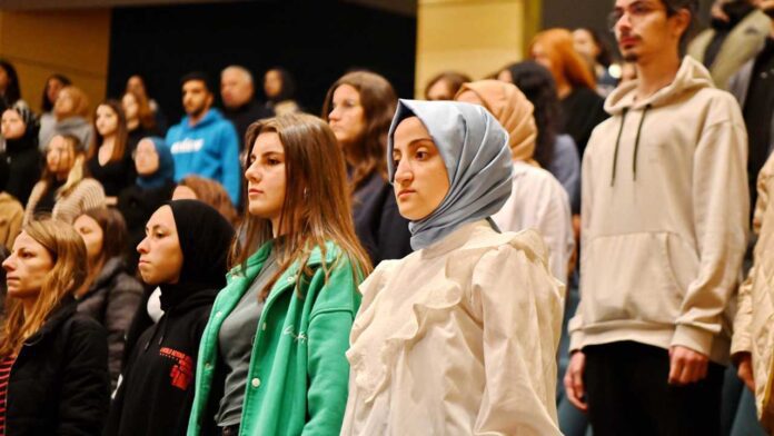 Atatürk’ü Anma Programında Öğr. Gör. Tuncay Kardaş yönetimindeki Devlet Konservatuvarı Türk Müziği Korosu, Atatürk’ün sevdiği şarkılardan oluşan bir repertuvarla sahneye çıktı. Program, Rektör Prof. Dr. Hamza Al’ın Öğr. Gör. Tuncay Kardaş ve Prof. Dr. Enis Şahin’e teşekkür belgesi ve çiçek takdiminin ardından sona erdi.