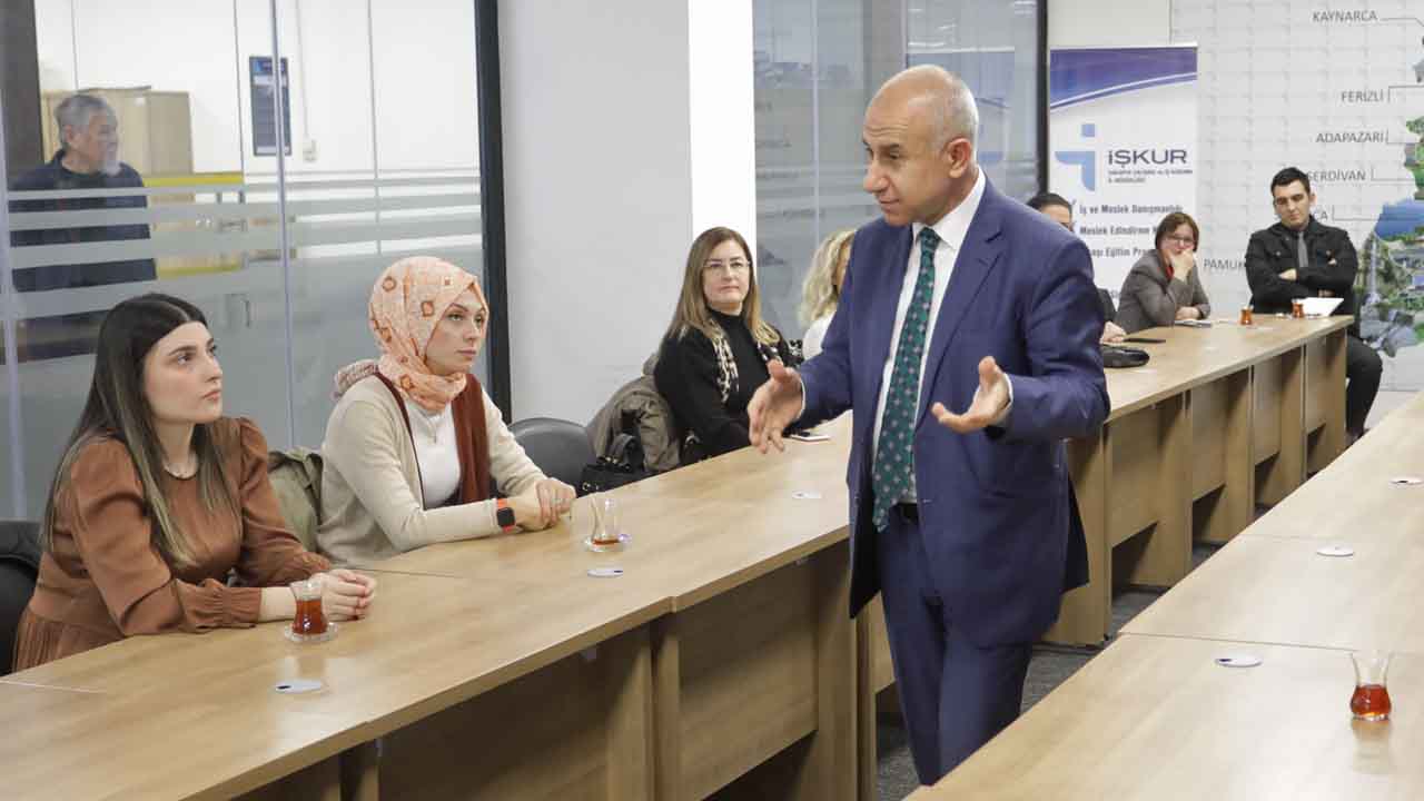 İŞKUR Sakarya İl Müdürü Tekin Kaya ev sahipliğinde gerçekleştirilen toplantıda sanayide kadın eli projesi kapsamında başvuru yapan kadınların istihdam öncesi iş hayatına yönelik eğitilip uygun pozisyonlara yerleştirilmesi hususunda iş birliği çalışması yapıldı.