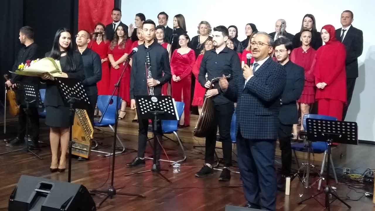 Şehit Erol Olçok Anadolu Lisesi salonunu dolduran davetliler tarafından sık sık ayakta alkışlanan konser etkinliğinde Serdivan Halk Eğitim Merkezinde oluşturulan Türk Sanat Müziği Korosu ülkemizin yetiştirdiği kıymetli bestekarlarımızın muhayyer, hicaz, nihavent makamlarındaki eserleri başarıyla icra ettiler.