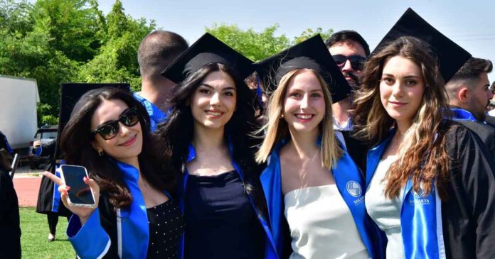 Tören, öğrencilerin keplerini fırlatması ile sona erdi.