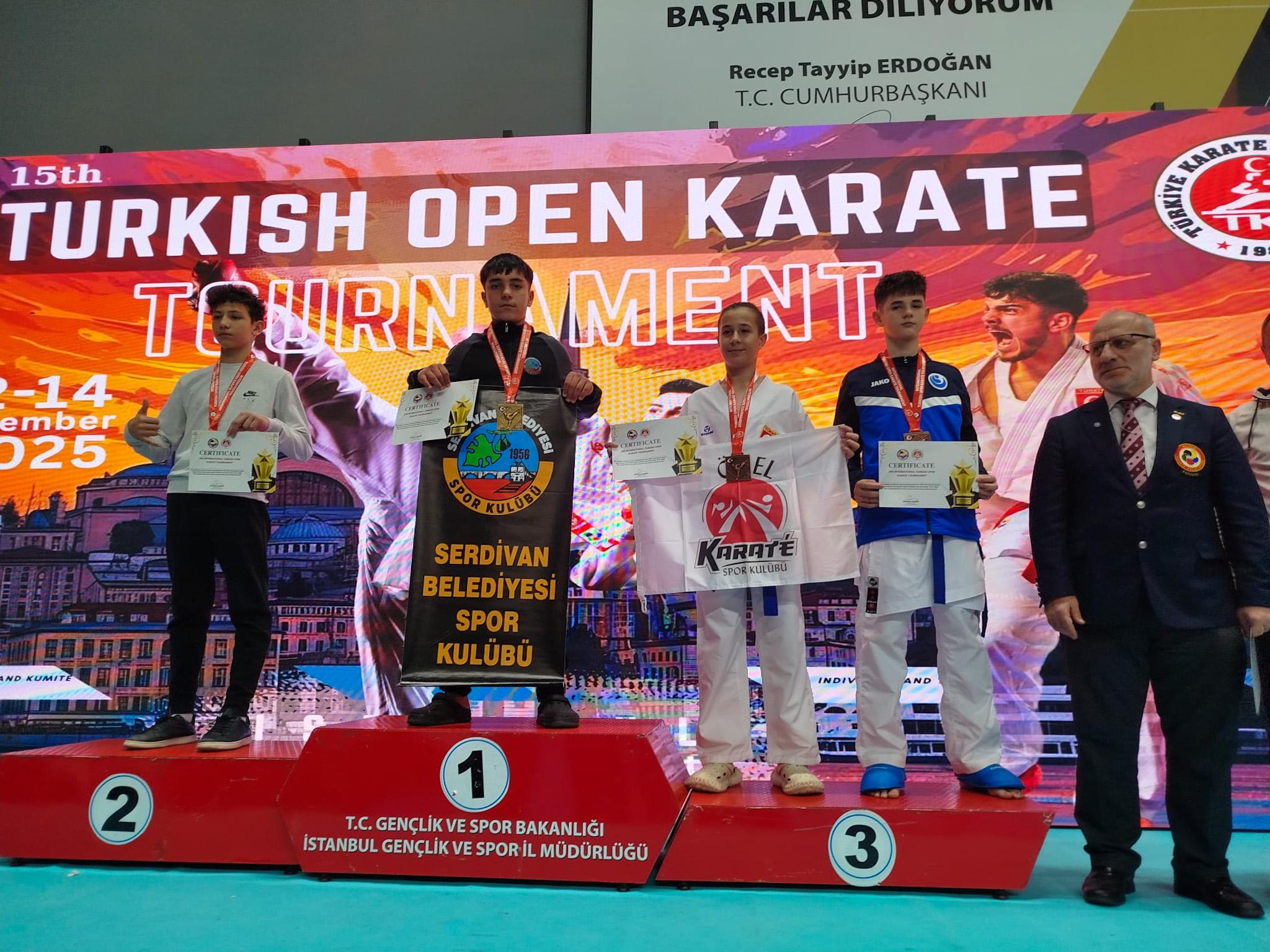 Serdivan Belediyesi Gençlik ve Spor Hizmetleri Müdürlüğü bünyesinde faaliyetlerini sürdüren Serdivan Belediyesi Spor Kulübü, sporun her alanında başarılarına kararlılıkla devam ediyor. Belediyenin Karate Takımı, 12–14 Aralık 2025 tarihleri arasında İstanbul’da düzenlenen Uluslararası Turkish Open Karate Turnuvası’nda önemli bir başarıya imza attı. 30 ülkeden 205 kulüp ve 1419 sporcunun katılımıyla gerçekleştirilen prestijli turnuvada Serdivanlı sporcular, ilçeyi uluslararası arenada başarıyla temsil etti.