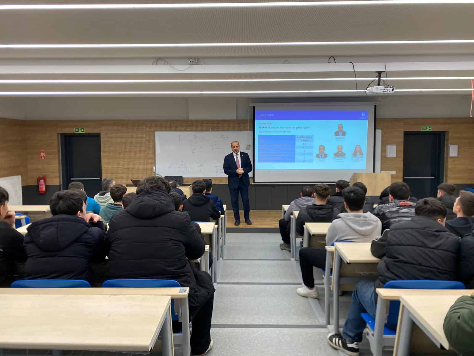 Etkinlik, Hendek MYO B-211 No’lu Amfide gerçekleştirildi. Yüksekokul Müdürü Doç. Dr. Ali Erduman, öğrencilere yükseköğretim süreci, meslek yüksekokullarının sunduğu eğitim olanakları ve kariyer planlaması konularında kapsamlı bir sunum yaptı.