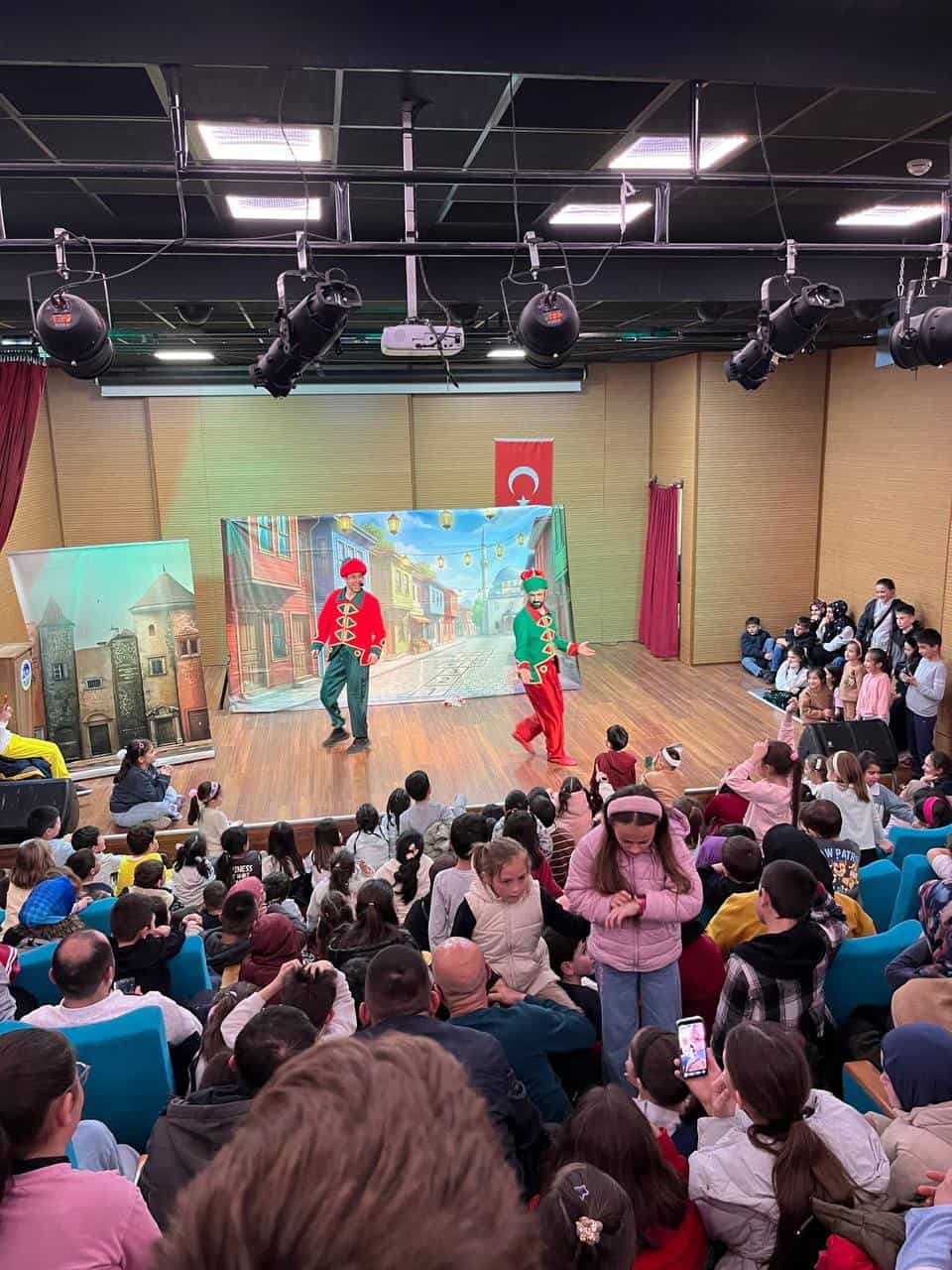 Atölye çalışmalarını takiben düzenlenen tiyatro gösterisinde, Fatih Sancaklı tarafından yazılıp yönetilen Karagöz-Hacivat oyunu sahnelendi. Eğlenceli diyaloglar ve eğitici mesajlar içeren bu geleneksel gösteri, salonda bulunan miniklerden büyük alkış aldı.