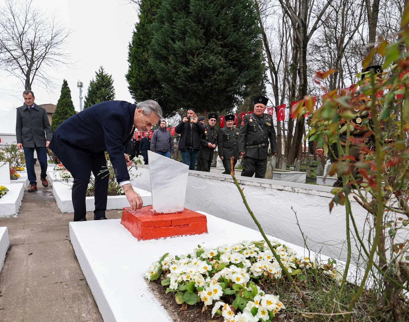 Sakarya Büyükşehir Belediye Başkanı Yusuf Alemdar, 18 Mart Çanakkale Zaferi’nin 111. yıl dönümünde düzenlenen anma törenine şehir protokolü ile birlikte katıldı. Serdivan ve Yorgalar Şehitliği’nde gerçekleşen törenlerde şehitlerimizin kabirleri başında dualar edildi, protokol üyeleri ve şehit yakınları bir araya gelerek kahramanların anlamlı hatırasını yad etti.