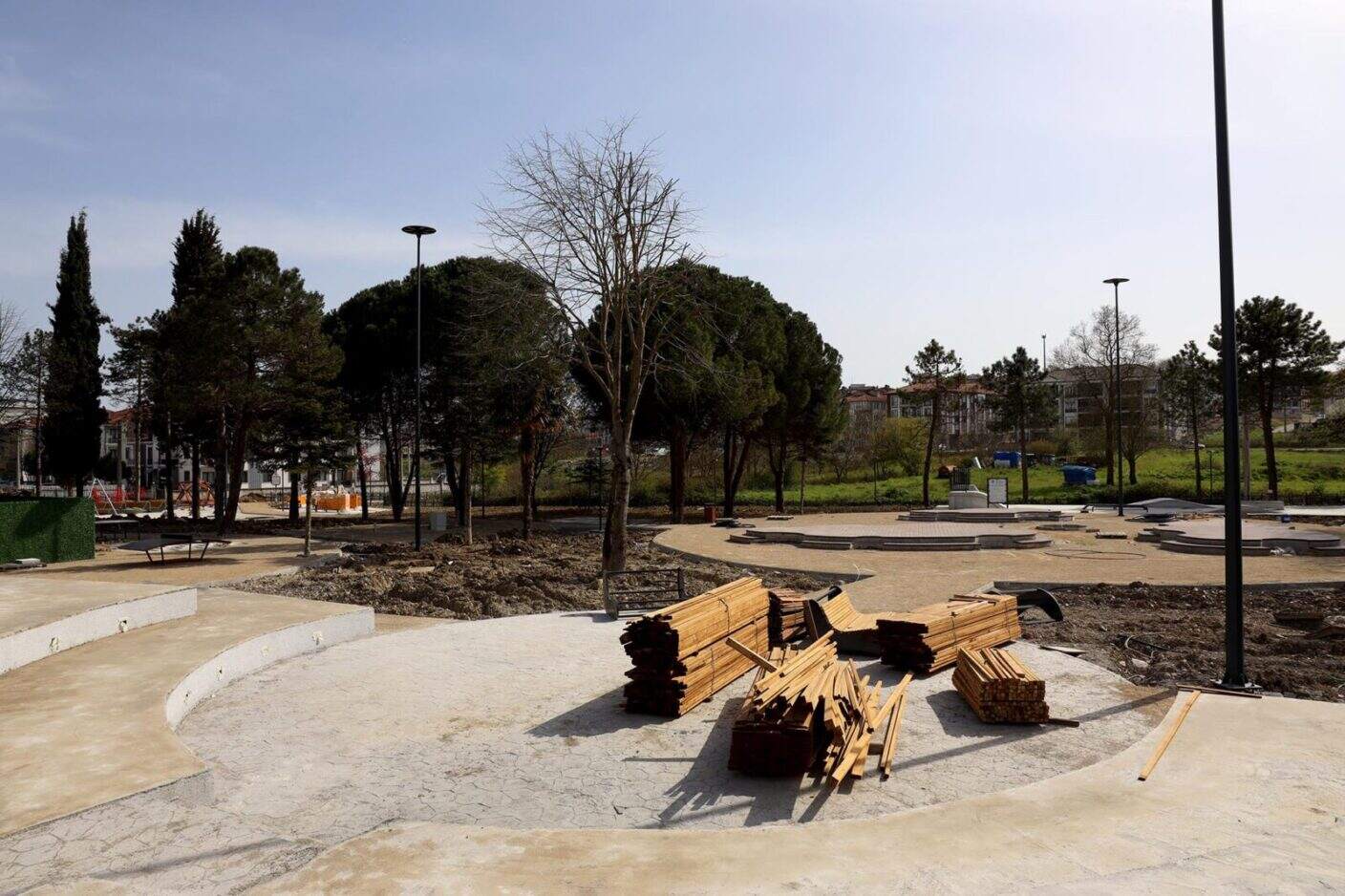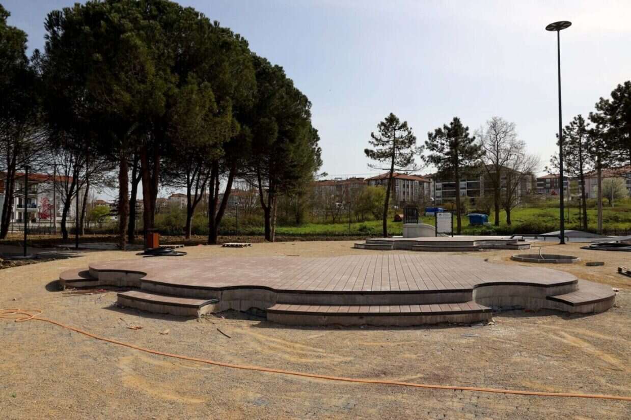 Parkın çevresi ferforje çitlerle çevrildi ve sulama altyapısı oluşturuldu. Amfi alanının beton imalatları ile oturma alanları tamamlanırken, ağaç dikimi ve peyzaj düzenlemeleri devam ediyor. Giriş takı ve büfe imalatı ile toprak tesviye işlemleri de kısa süre içinde tamamlanacak.